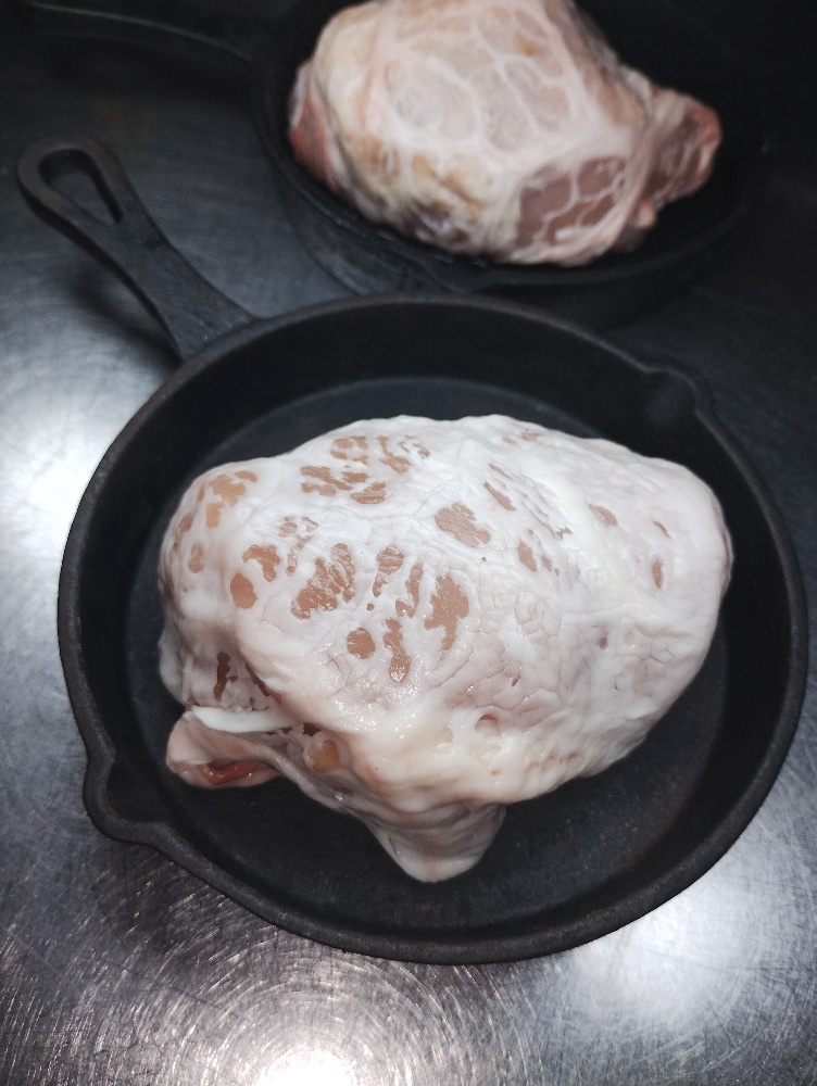※当店では伊トラバクリーニ社の熟成庫(プログラムによりポー川流域ジベッロ村の気候を自動制御で再現及び庫内の水蒸気ph常時モニターにより安全性を確保)を使ってプロシュット類を自家加工しています。